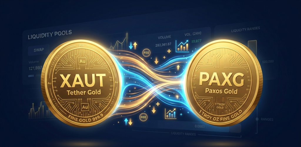 Consider the two largest gold backed tokens Tether Gold (XAUT) and Pax Gold (PAXG). By supplying liquidity to an XAUT/PAXG trading pair on a decentralized exchange, investors earn a share of trading fees each time users swap between the two gold backed assets.