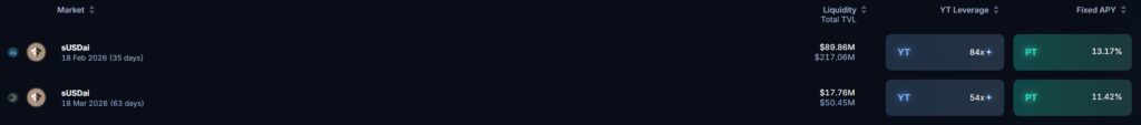 More sophisticated investors can amplify returns by leveraging Pendle PTs. PTs can be used as collateral to borrow stablecoins, which are then reinvested, a strategy commonly referred to as looping. Using money markets such as Morpho, experienced users can push effective yields as high as 30%–40% APY. However, this approach introduces liquidation risk, smart contract exposure, and requires active monitoring. There is currently no one-click solution to maximize leverage, meaning execution is largely manual unless supported by custom tooling or developer resources.